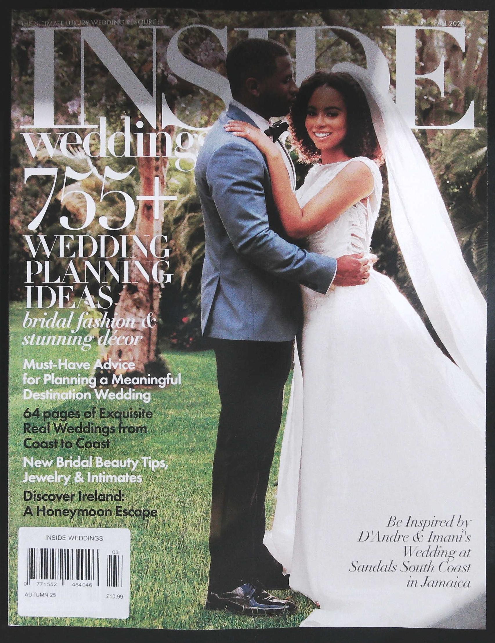 Inside Weddings magazine is one of the world’s most exclusive wedding services directories. Produced in America and distributed worldwide, Inside Weddings contains the wedding industry’s most elaborate and elegant styles, along with all the news and latest gossip.