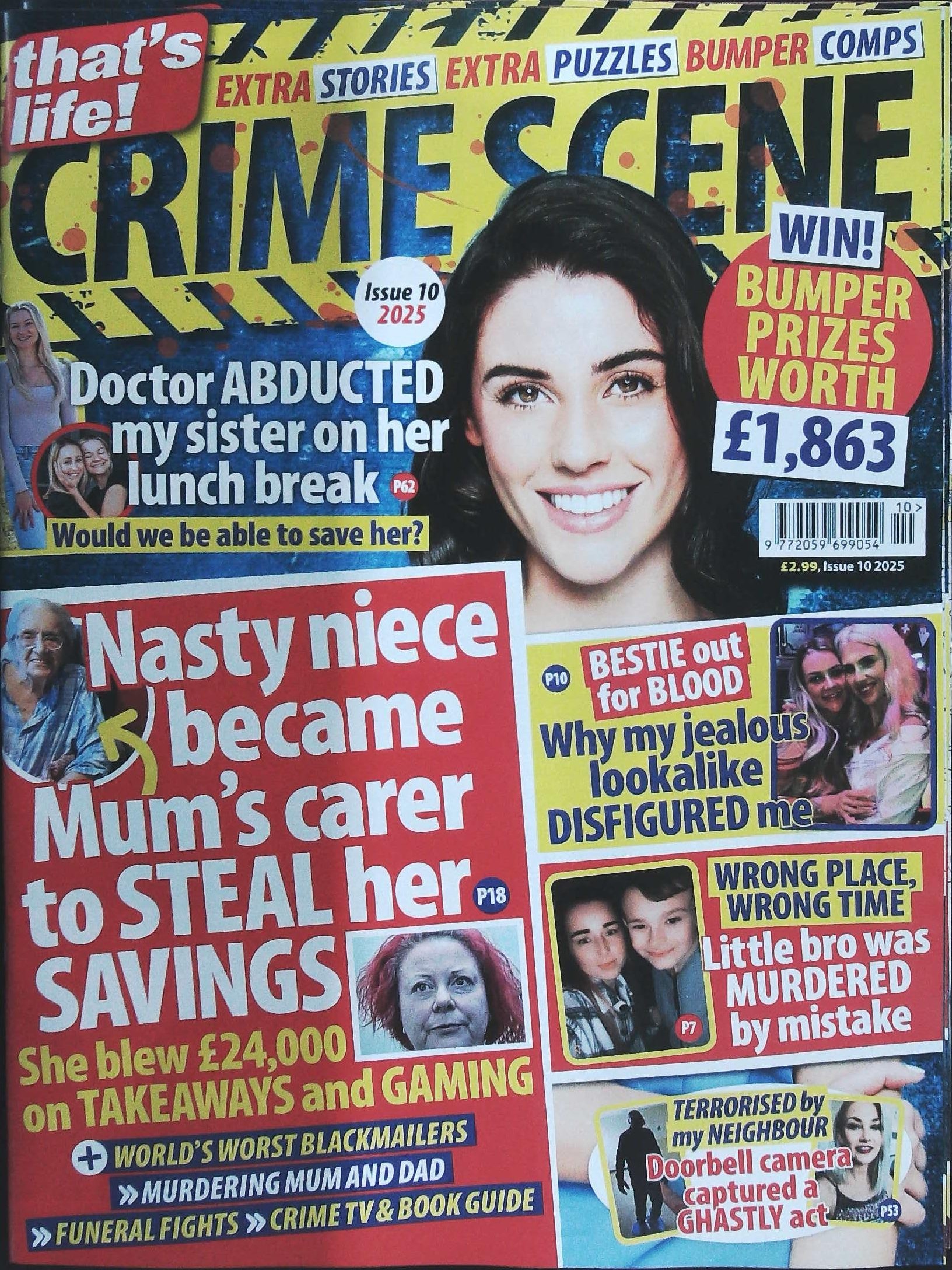 You can purchase a single copy of That's Life True Crime Scene or a subscription of your desired number of issues, which can be delivered worldwide. If you place your order before 3pm, we will despatch the same day! All prices shown include postage and packaging.